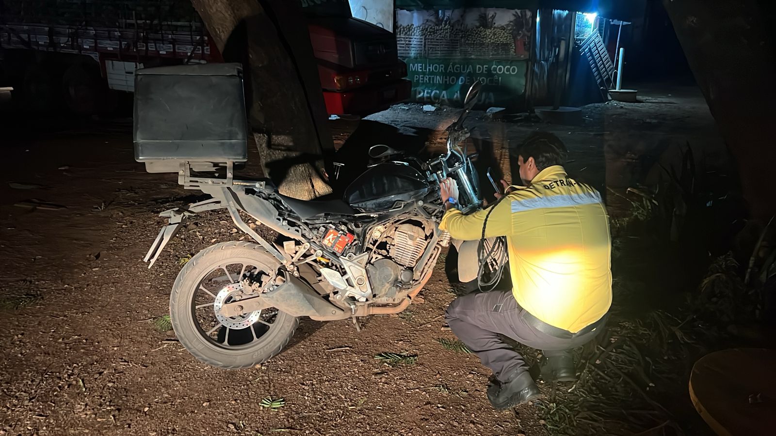 Chegando ao local, os agentes consultaram a placa no sistema e identificaram que se tratava de uma motocicleta Honda/CB300F Twister CBS com restrição de roubo/furto. Imediatamente o proprietário do veículo, Jardel de Siqueira, foi acionado e compareceu ao local.