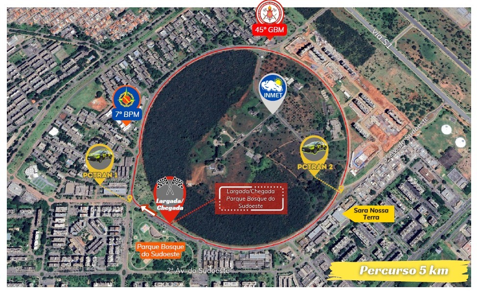 No sábado (5), das 17h às 19h30, os agentes de trânsito farão interdições e controle do trânsito no Sudoeste, para a segurança dos participantes da corrida Pink For Life Run. O local de concentração, largada e chegada dos atletas será no Parque Bosque do Sudoeste. As duas faixas no sentido horário da 3ª e da 4ª Avenidas serão utilizadas pelos corredores, ficando interditadas para o tráfego de veículos. Serão fechadas a rotatória da 3ª Avenida com a 4ª Avenida e a rotatória de acesso à Quadra 500, na 3ª Avenida. O acesso à 3ª Avenida pela S1 também ficará fechado até o final da corrida, previsto para as 19h30.