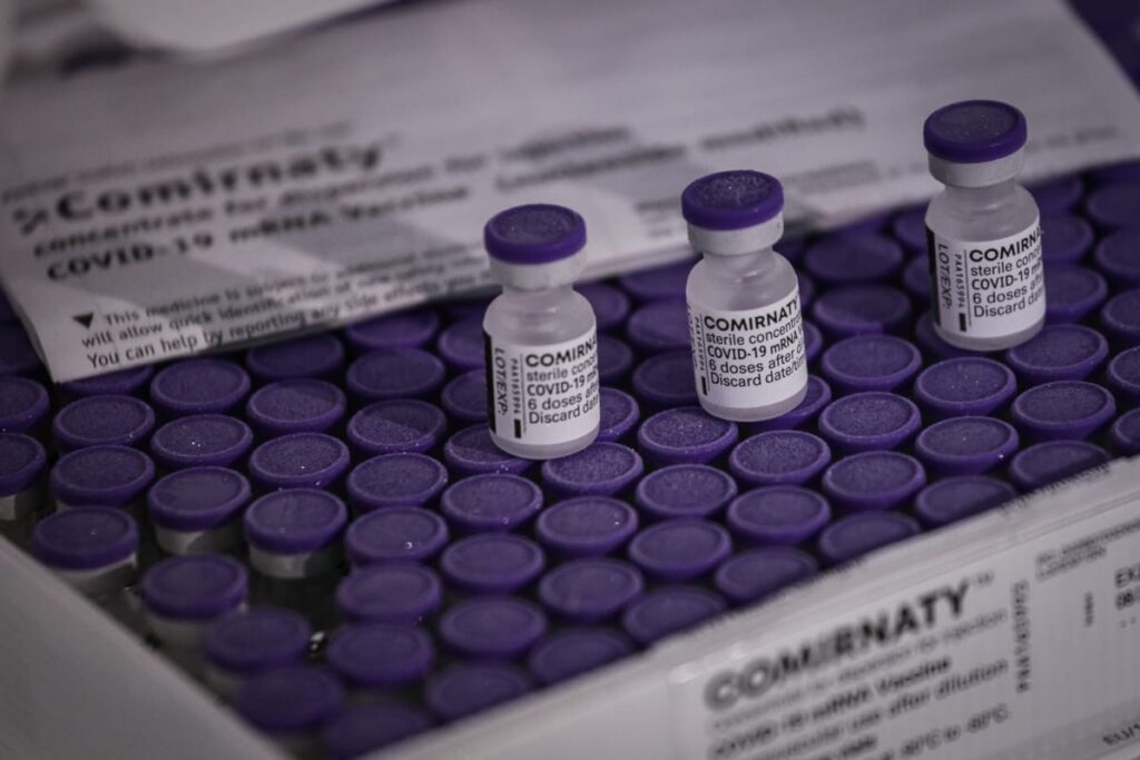 Os frascos contêm um pó liofilizado congelado que precisa ser diluído em uma solução líquida. Esse processo será feito diretamente nos pontos de vacinação que irão receber essas vacinas