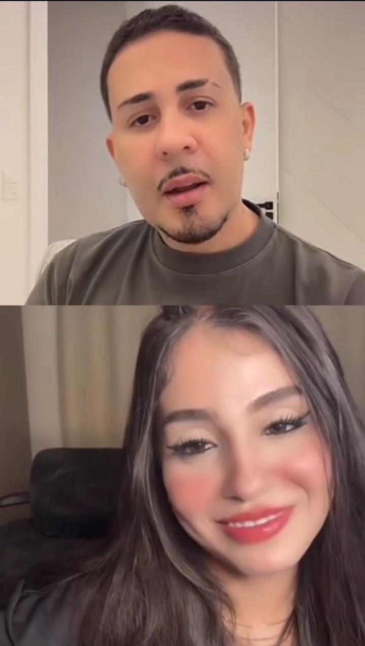 A interação entre os dois foi breve, mas carregada de tensão. Inicialmente em silêncio, Carlinhos soltou um tímido “O que foi?”, ao que Duda respondeu de forma direta: “Eu que pergunto. O que foi?”. O influenciador tentou desviar, dizendo: “Eu fiz o quê?”, mas foi imediatamente confrontado com acusações de cinismo por parte de Duda, que ainda insinuou ter algo a revelar. Diante da situação, Carlinhos pediu que ela saísse da live, e Duda se despediu, deixando o influenciador claramente abalado.