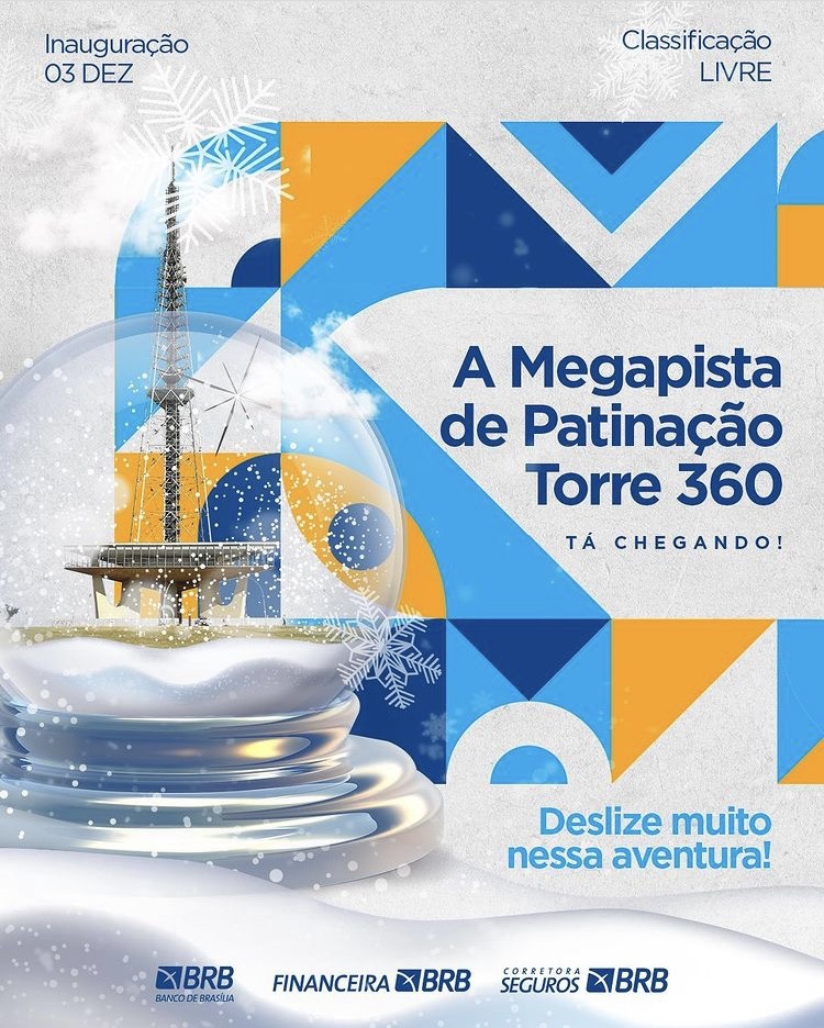 Pensando em trazer uma atração legal para o final do ano, com clima natalino, o projeto Torre 360 BRB montou uma Megapista de Patinação, na base da Torre de TV, com classificação livre, que pode comportar, simultaneamente, até 80 pessoas, para que um grande momento de lazer seja desfrutado.