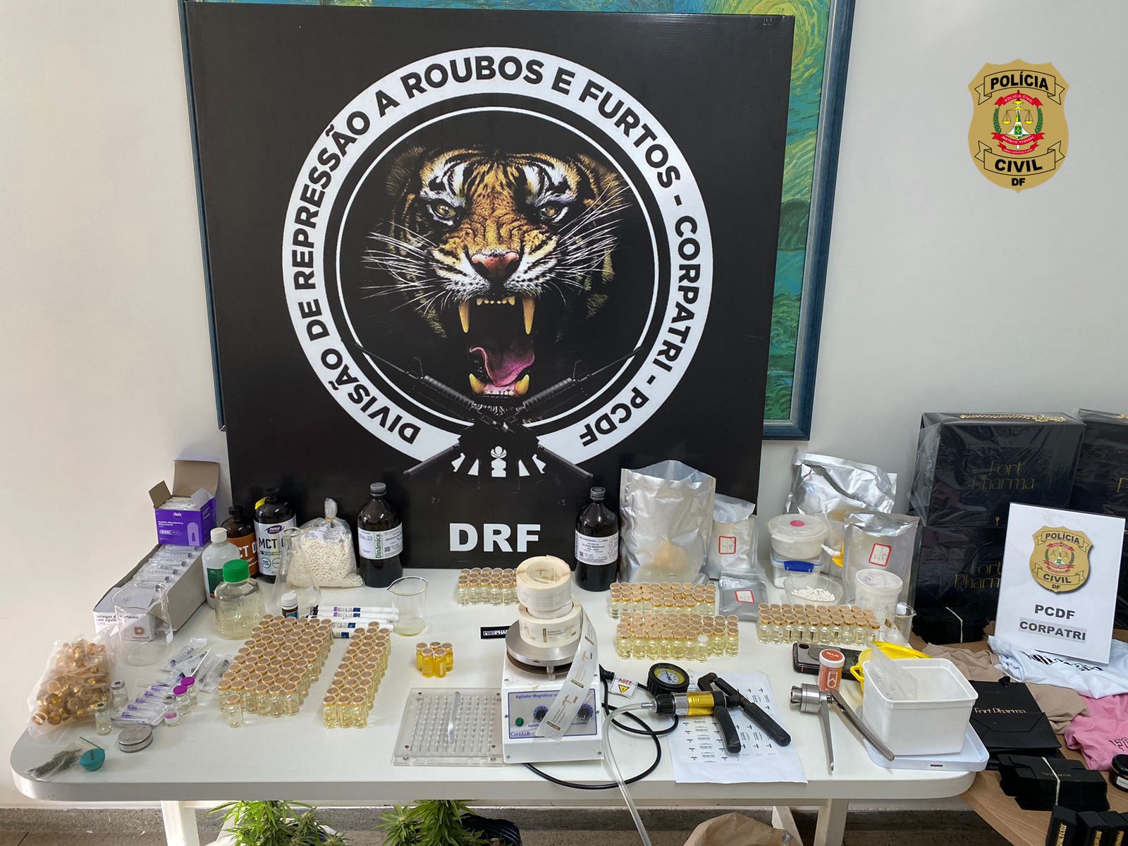 As investigações, iniciadas a partir de uma denúncia anônima, levaram os policiais a um imóvel na Colônia Agrícola Samambaia, em Taguatinga, onde funcionava um laboratório clandestino para a produção de anabolizantes. No local, foram apreendidas diversas substâncias anabolizantes falsificadas, insumos para a produção, além de materiais utilizados para a embalagem e comercialização dos produtos.