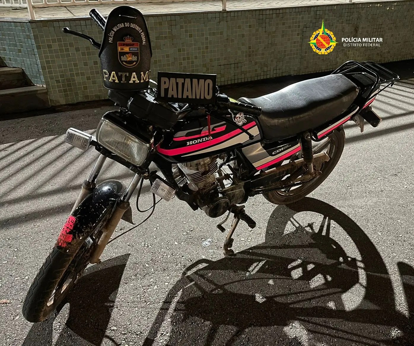 A Polícia Militar do Distrito Federal, através do BPCHOQUE (Patrulha Tática Móvel), apreendeu um menor de idade conduzindo uma motocicleta com sinais identificadores adulterados, por volta das 21h desta segunda-feira (21)