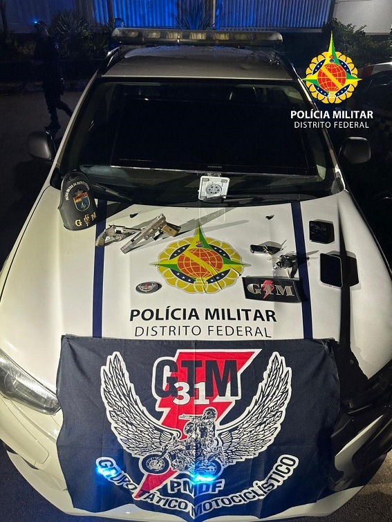 Realizando patrulhamento na região indicada, os policiais se depararam não apenas com o veículo em questão, mas também com um outro carro preto que havia sido utilizado como apoio no roubo. O preto, segundo informações, estava envolvido em diversos outros casos na área de Samambaia nos últimos dias.